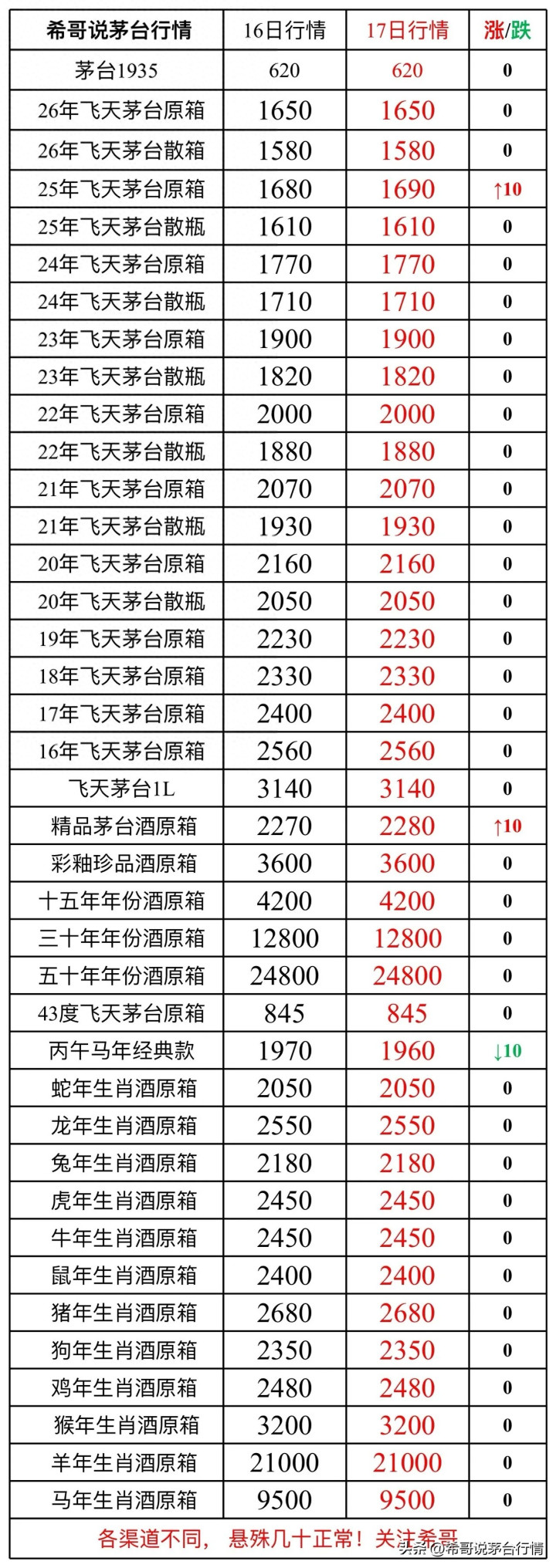 综合来看,4月17日茅台市场走势稳健,结构分化特征显著。刚需型流通品种表现偏强,投资属性较强的生肖品种小幅休整,市场整体处于业绩落地后的平稳消化阶段,未出现极端波动,也未形成趋势性行情。
